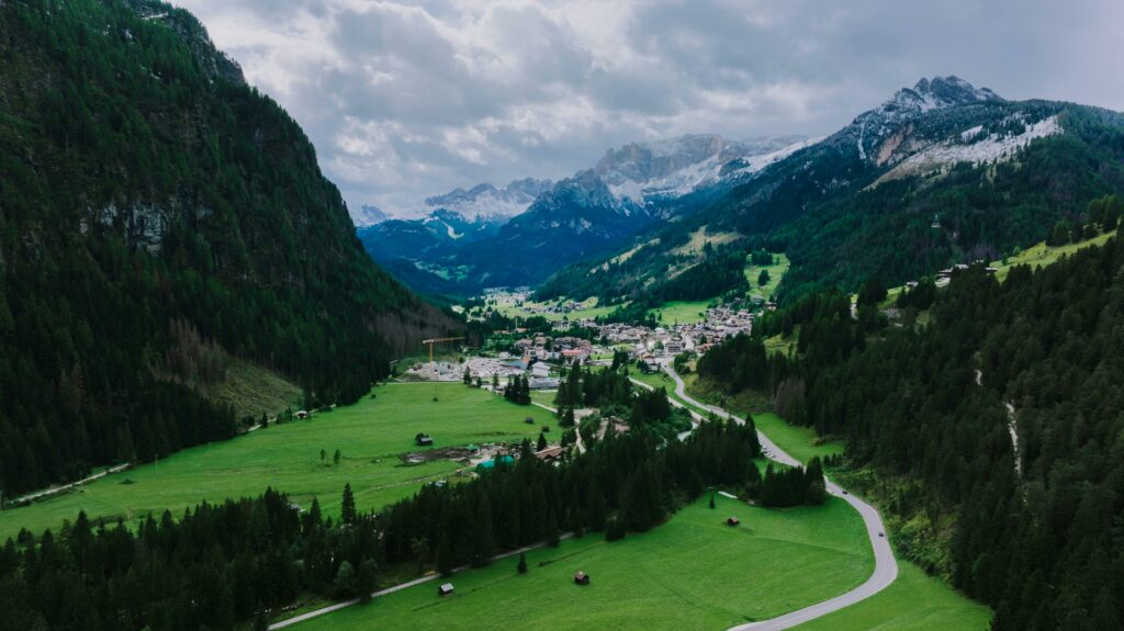 La Val di Fassa longe le torrent Avisio depuis Moena jusqu’à Canazei. Et honnêtement, dès que vous arrivez vers Canazei ou Campitello di Fassa, vous comprenez pourquoi les photographes et les grimpeurs se battent pour venir ici.